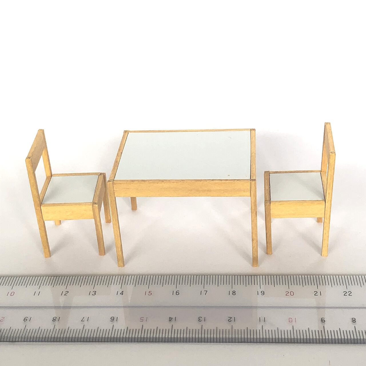 1/12サイズのキッズ用テーブルと椅子2脚のセットです。