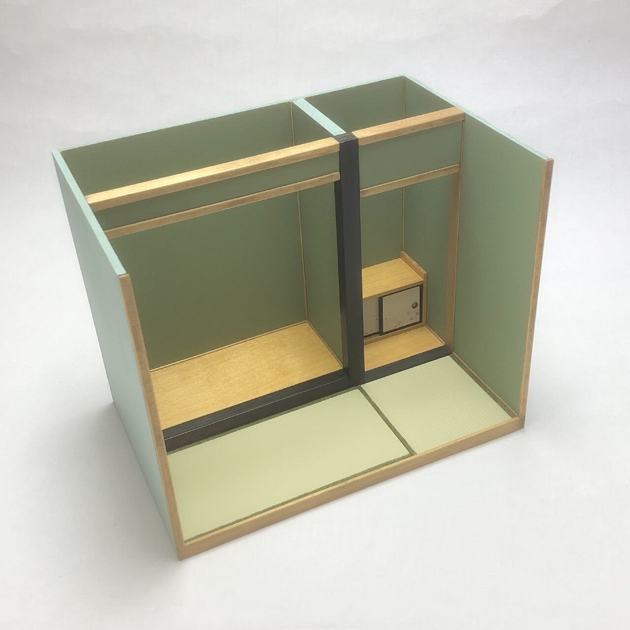 床脇には開閉できる地袋が付いています。畳はプラスチックですが、畳へりは布製で、大変リアルに見えます。